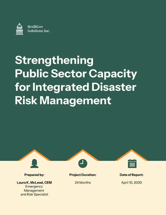 Deseja criar uma apresentação envolvente e profissional para suas propostas de Gestão de Riscos de Desastres no Setor Público? O modelo da Venngage oferece um design intuitivo e visualmente atraente para comunicar suas estratégias e insights com eficácia. Este modelo combina um layout limpo com recursos personalizáveis para apresentar informações complexas em um formato facilmente assimilável. Destaque os pontos principais usando títulos claros e escolha entre uma variedade de esquemas de cores e fontes para combinar com a identidade visual da sua organização. Explore nossas bibliotecas de imagens gratuitas para selecionar fotos ou ícones impactantes que se conectem com seu público. Seja para avaliação de riscos, planos de mitigação ou alocação de recursos, este modelo é o design ideal para promover e divulgar suas ideias! Adapte-o às suas necessidades alterando cores, tamanhos ou substituindo elementos visuais por outros mais chamativos.
